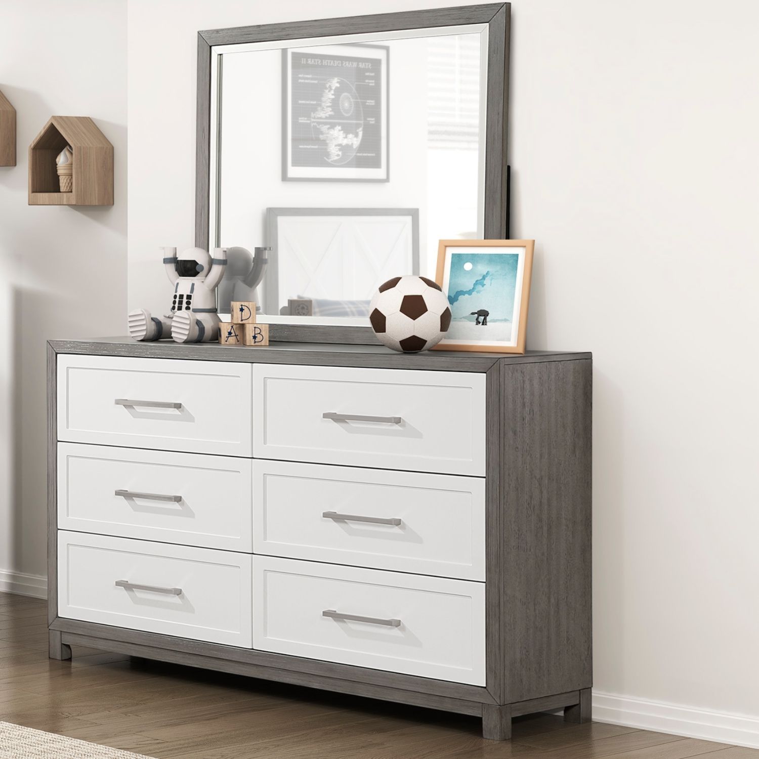 6 Drawer Dresser and Mirror in Ivory and Gray Finish