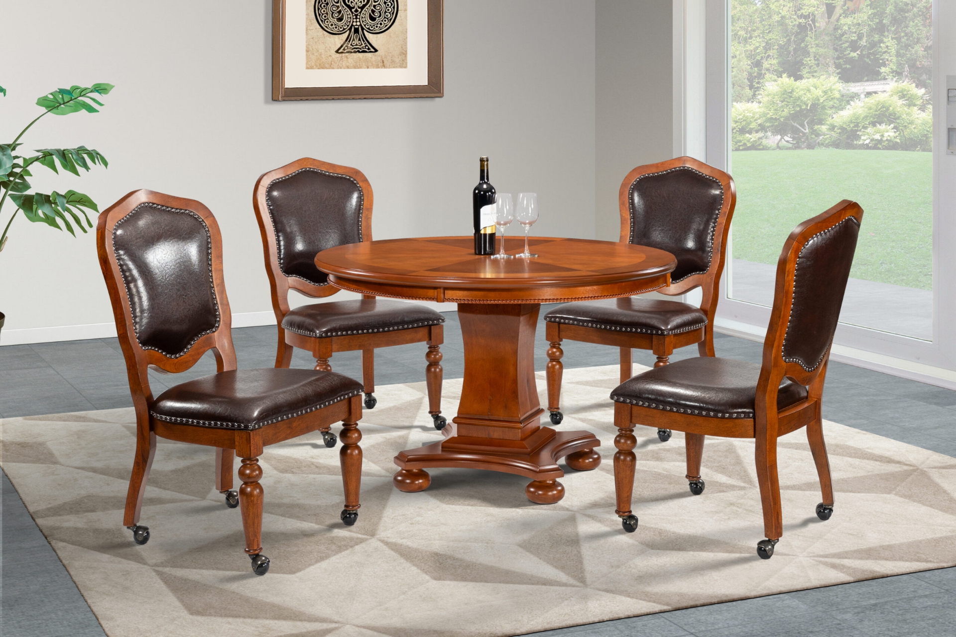 DIMENSIONS Table : 30.5"H x 48" Round | Center padded playing area: 36.25" round | Cup holders: 3.25" round | Leg clearance: 27" | Weight: 73 lbs.Chair : 22" W x 24.5" D x 41" H