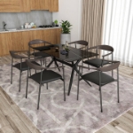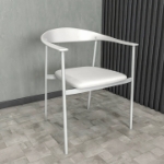 Dining Chair Upholstered in Leather with Stainless Steel Frame and Legs