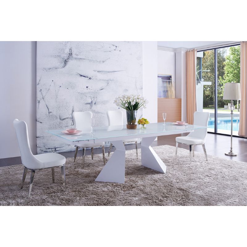 74-100" Extendable White Glass Dining Table