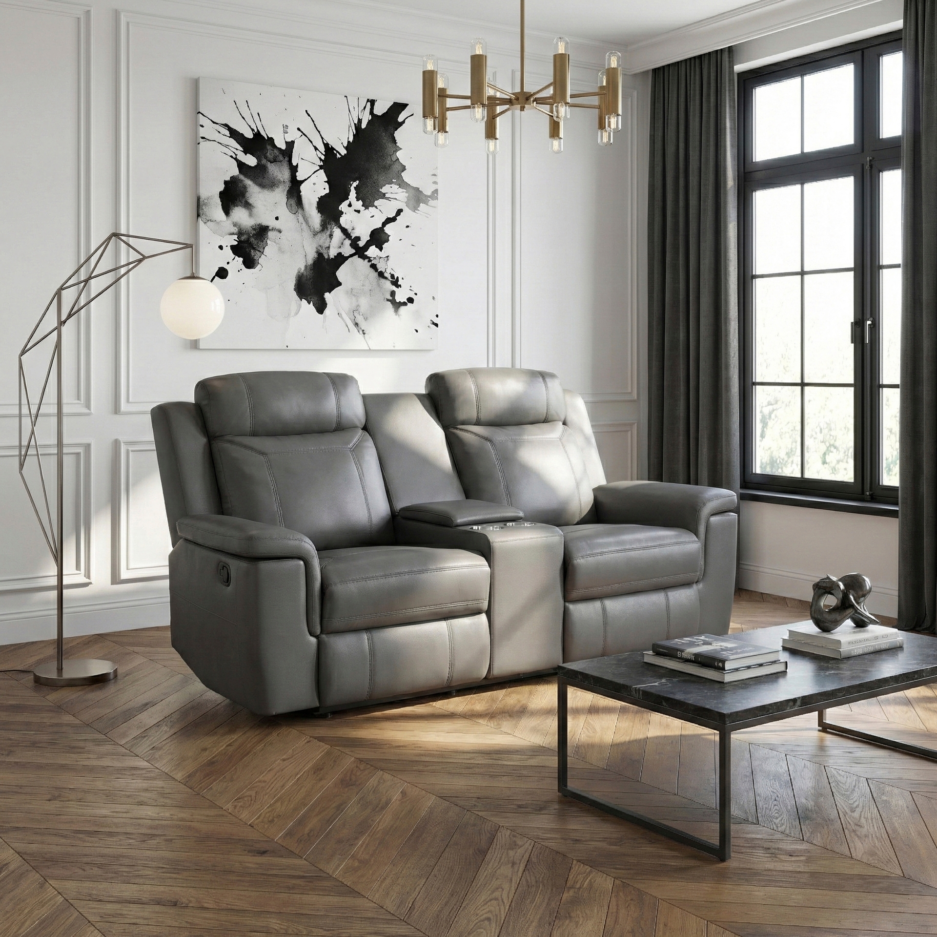 Genuine Leather Dark Gray Reclining Loveseat
