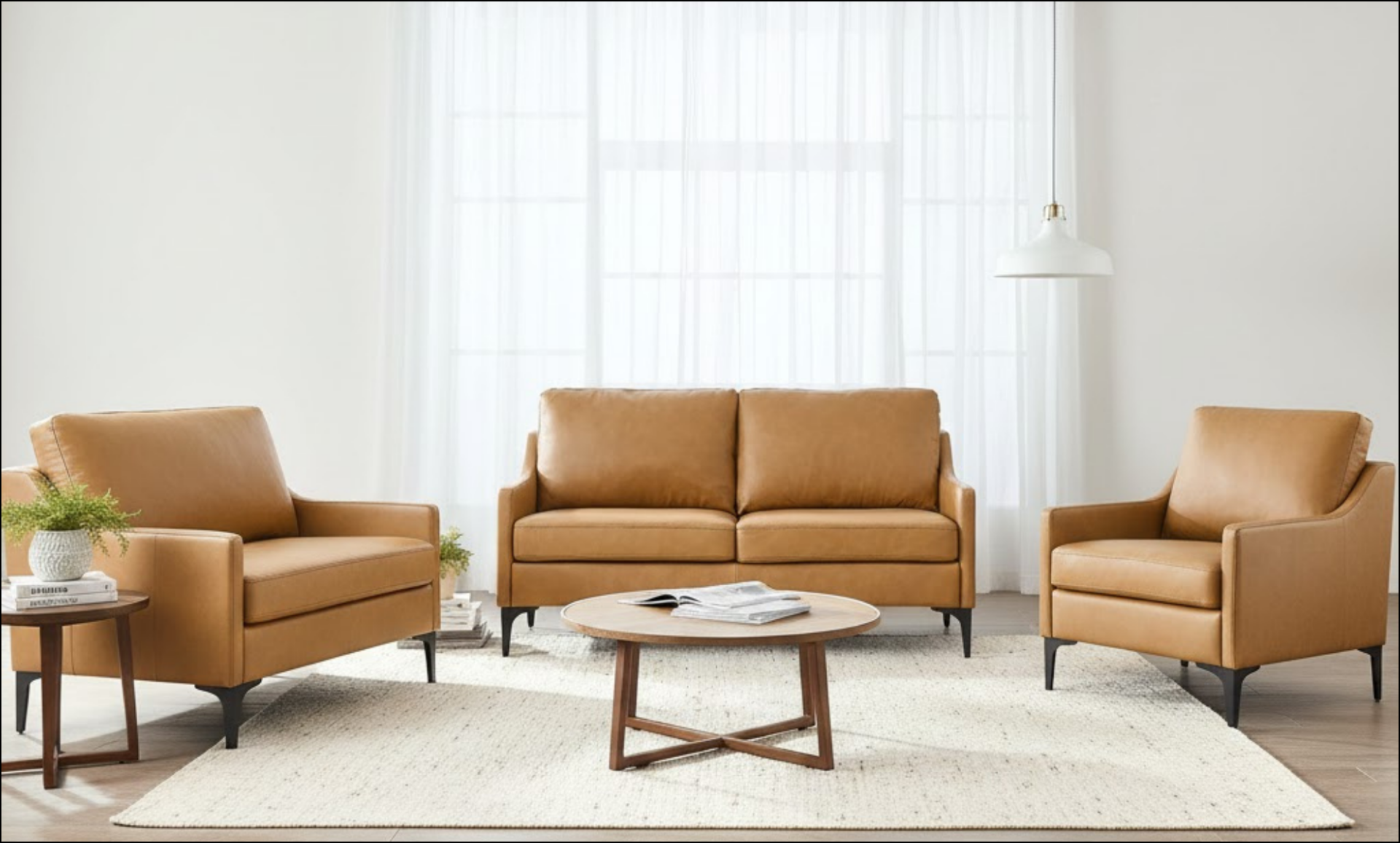 Genuine Leather Tan, Grey and Brown Sofa, Loveseat and Chair