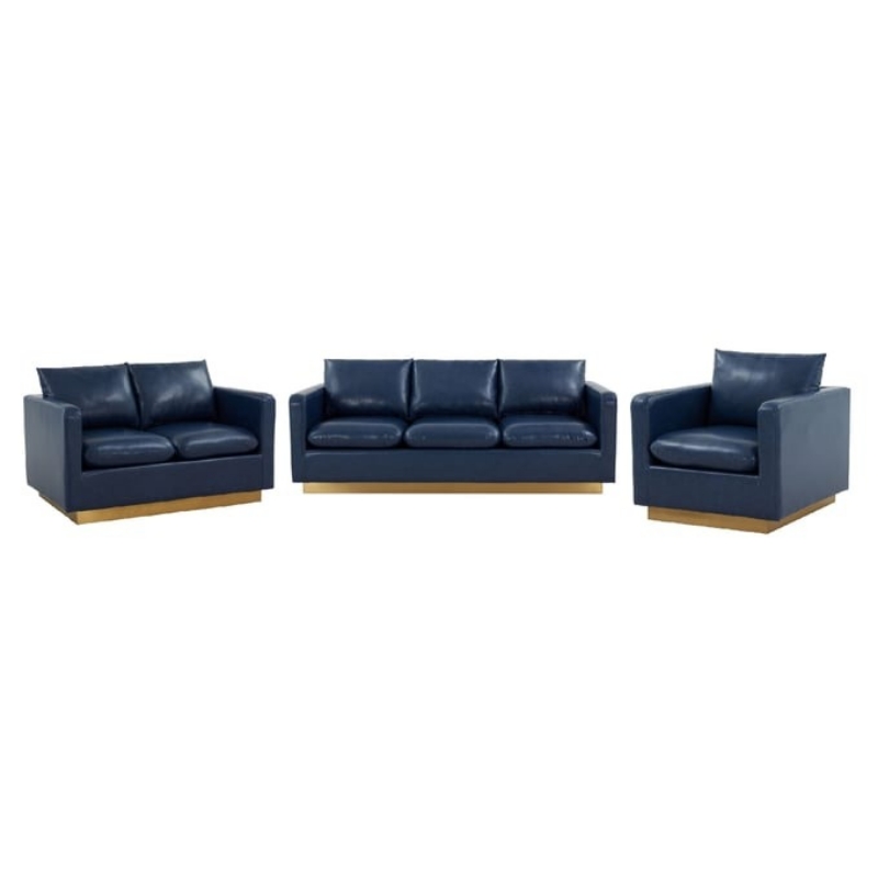 Leather Sofa, Loveseat and Chair with Gold Frame