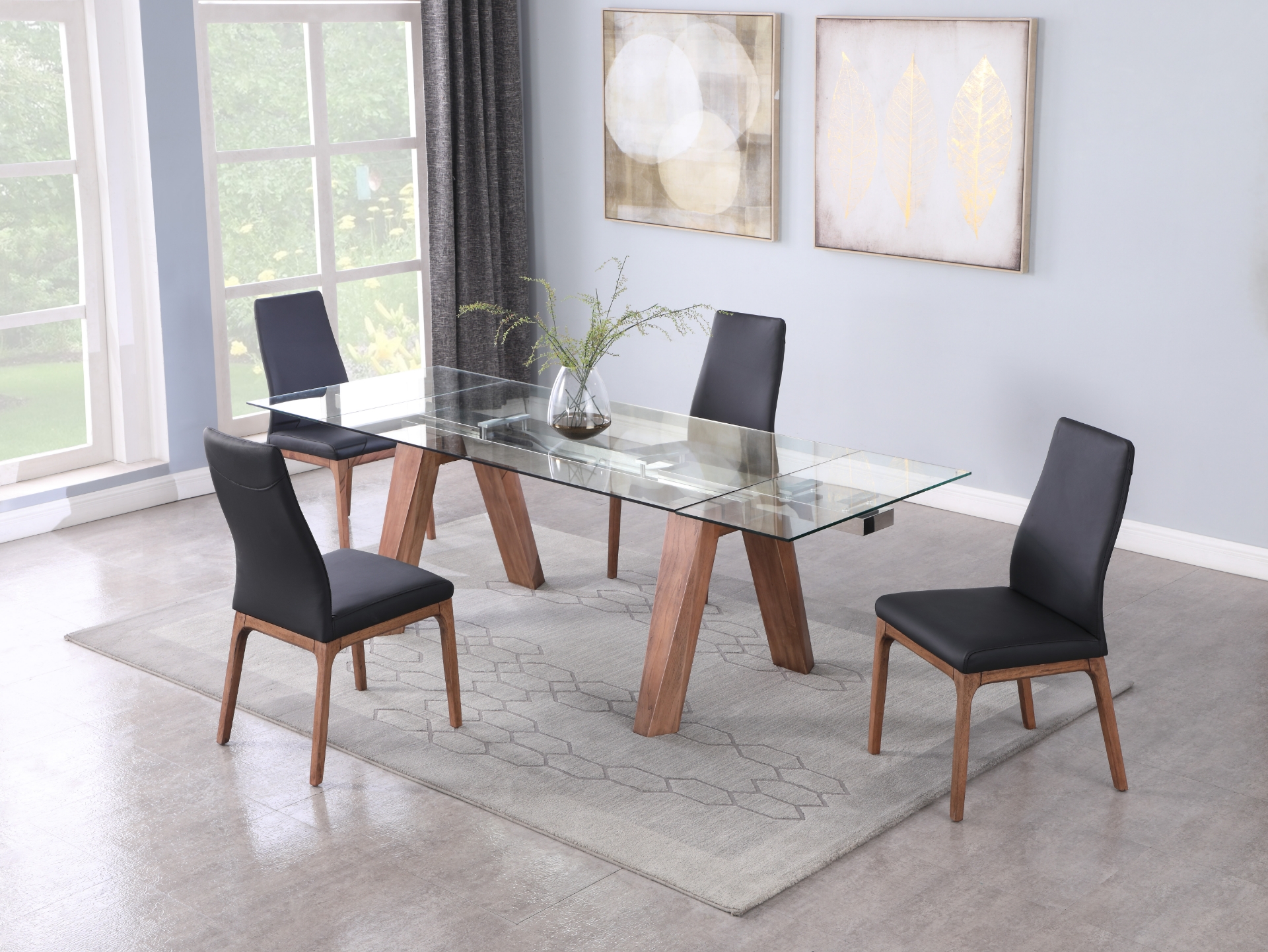 63-94.5"W x 29.92"H Modern extendable dining table w/ Glass Top