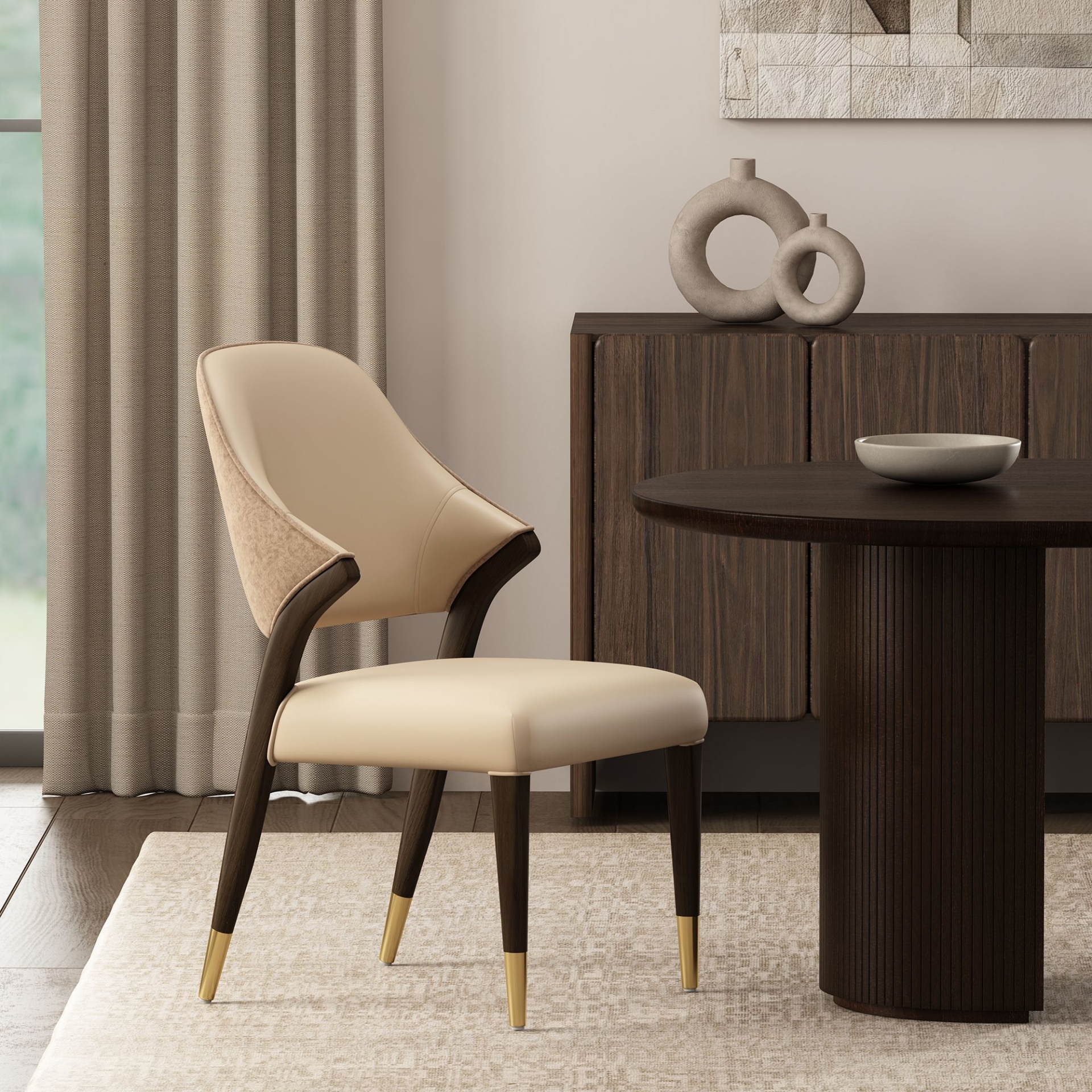 Wood Upholstered Side Chair in Tan/Taupe/Stone Gray